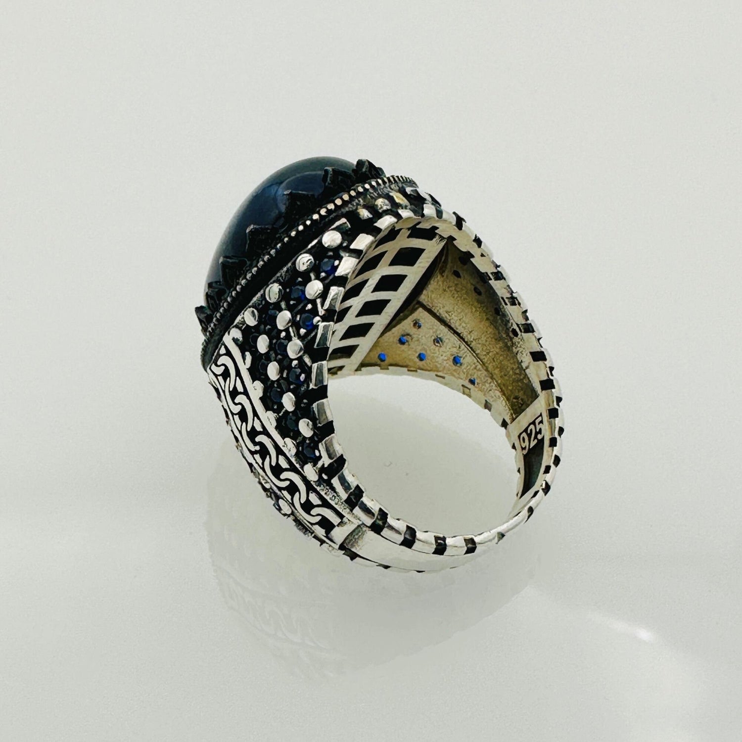 خاتم يدوي الصنع للرجال من اللازورد | مجوهرات حجر كريم أزرق بيضاوي أصلي من الفضة الإسترلينية 925