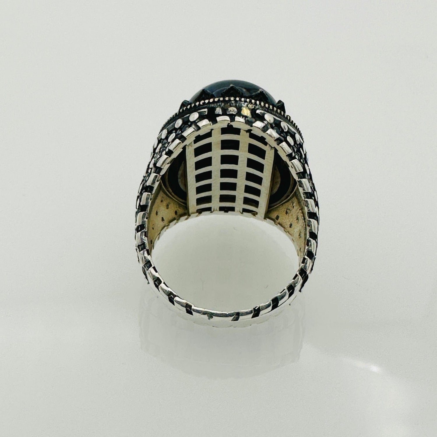 كل خاتم هو شهادة على الفن الاستثنائي، يتميز بحجر لازورد أزرق بيضاوي جذاب موضوع داخل إطار قوي من فضة استرلينية 925. هذا المزيج الفريد يضمن جودة دائمة وجمالية مميزة تبرز.