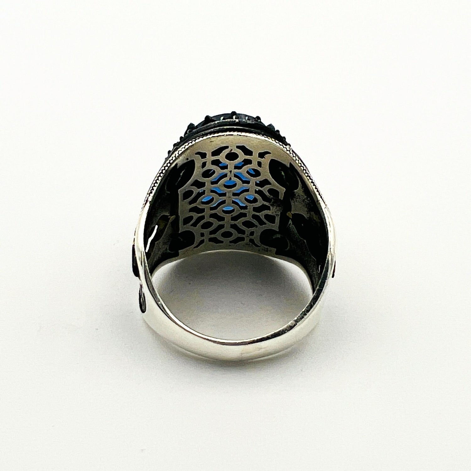 اكشف عن قطعة من التاريخ والفن مع خاتم الرجال التركي اليدوي العثماني من الفضة والياقوت الأزرق الرائع. هذا ليس مجرد خاتم؛ إنه شهادة على الحرفية الخالدة، مصمم للفرد المميز الذي يقدر الأسلوب الفريد والمعنى العميق.