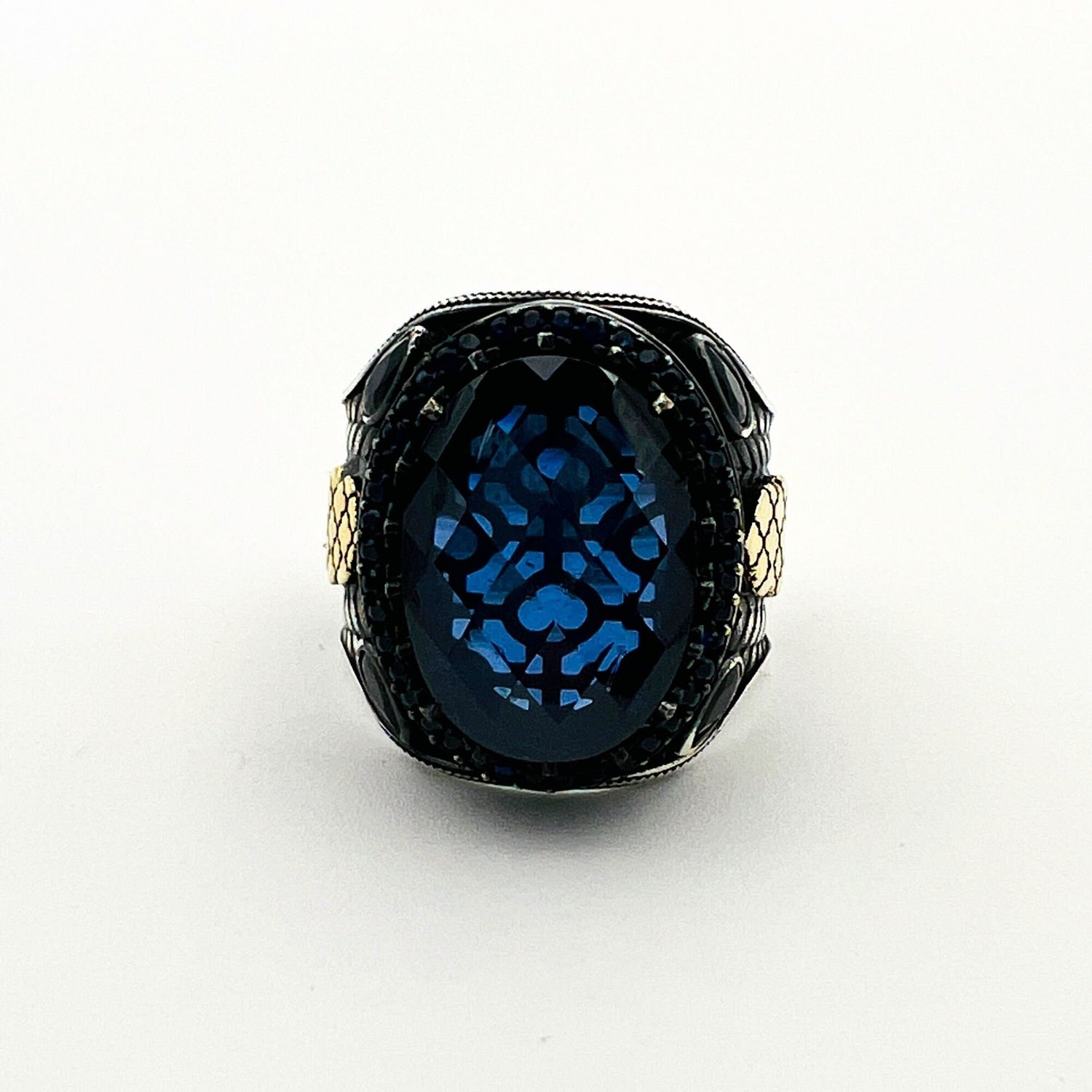خاتم الرجال التركي اليدوي العثماني من الفضة الاسترلينية 925 والياقوت الأزرق