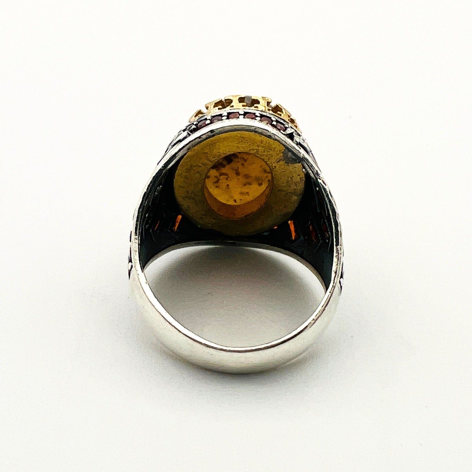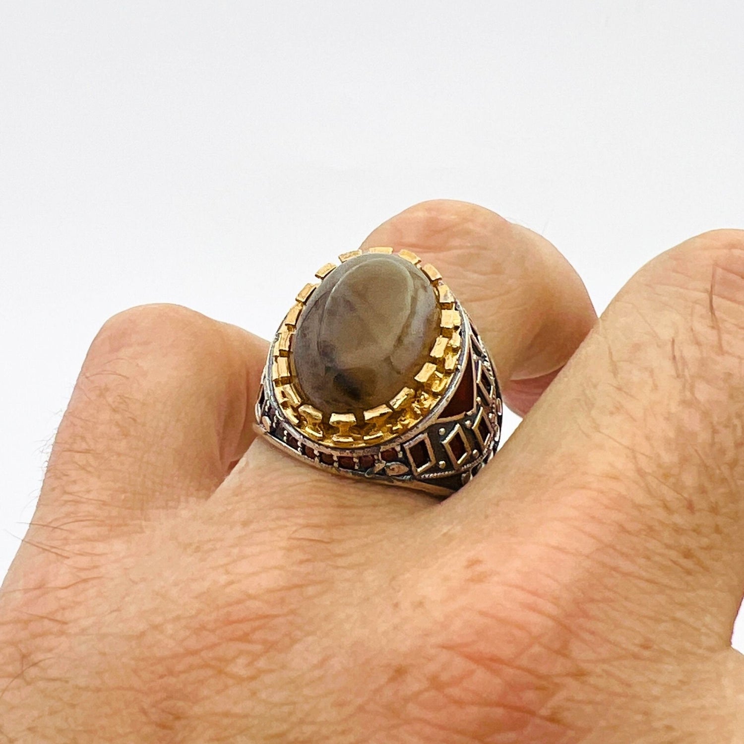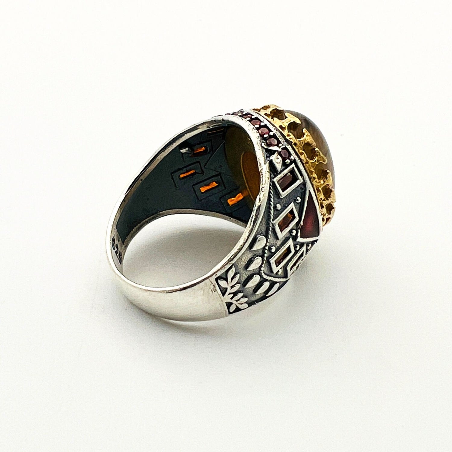 خاتم فضة إسترليني 925 على الطراز العثماني للرجال مع حجر العقيق البني | مجوهرات تركية مصنوعة يدوياً