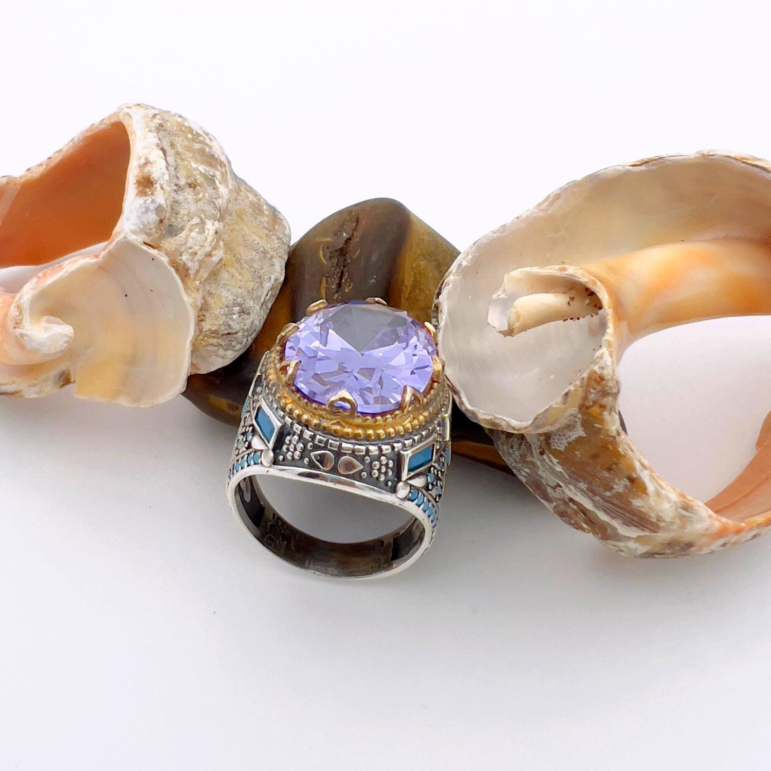 - استثمر في قطعة مجوهرات خالدة، تجمع بين الجمال الطبيعي للأماثيست والجاذبية الدائمة للتصميم التركي.