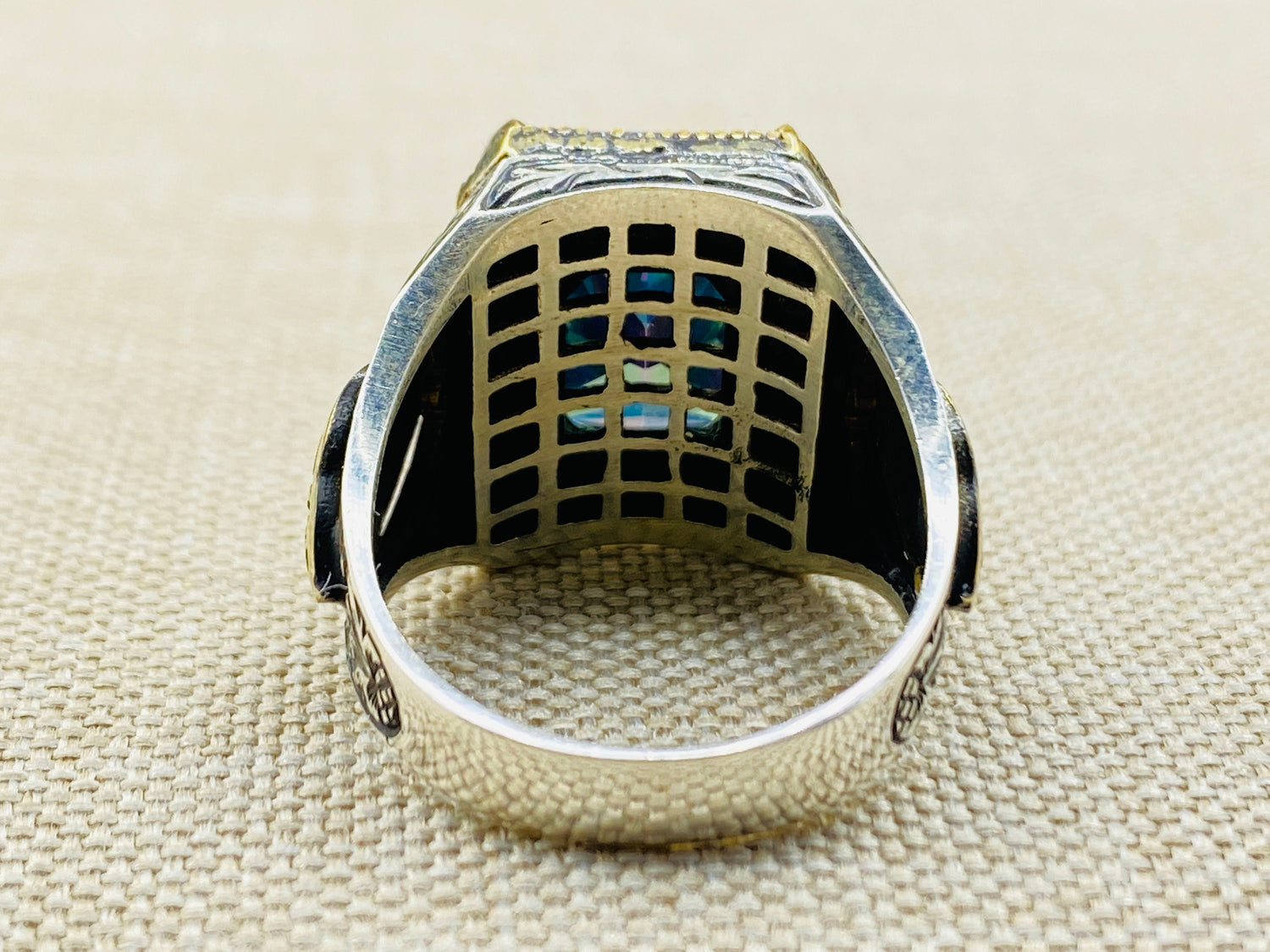 خاتم فضة استرلينية مطرز يدوياً على الطراز العثماني للرجال بحجر التوباز الغامض