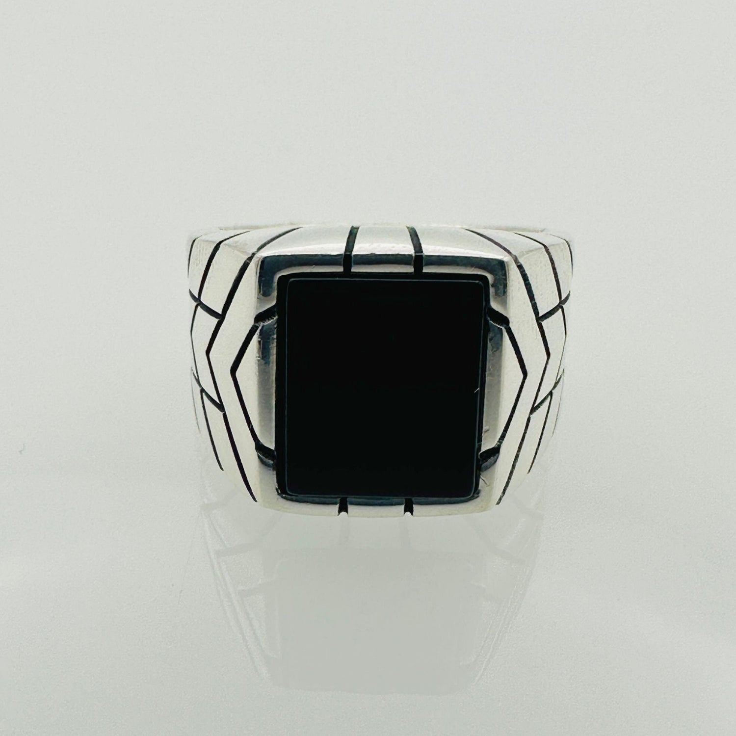 Men's Natural Black Onyx Silver Ring - TryAladdin
