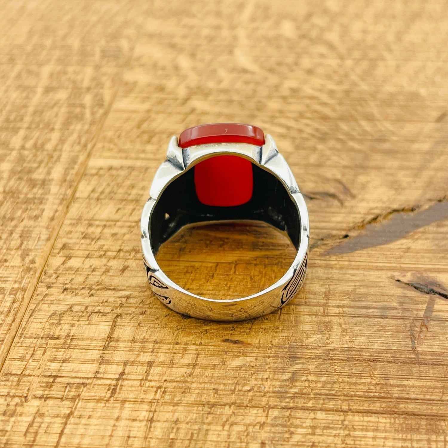 خاتم فضة استرلينية 925 للرجال على الطراز العثماني مع عقيق مربع أحمر مصنوع يدويًا