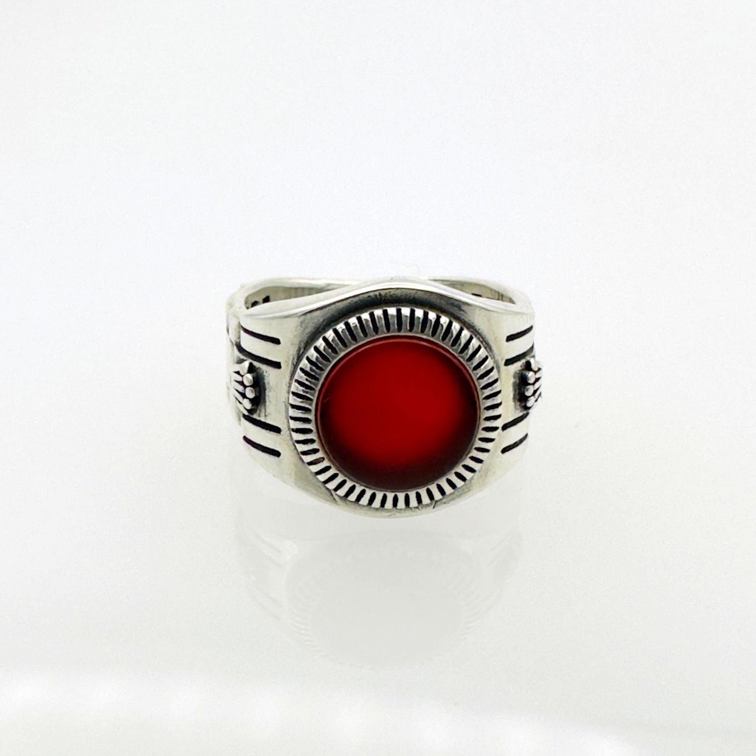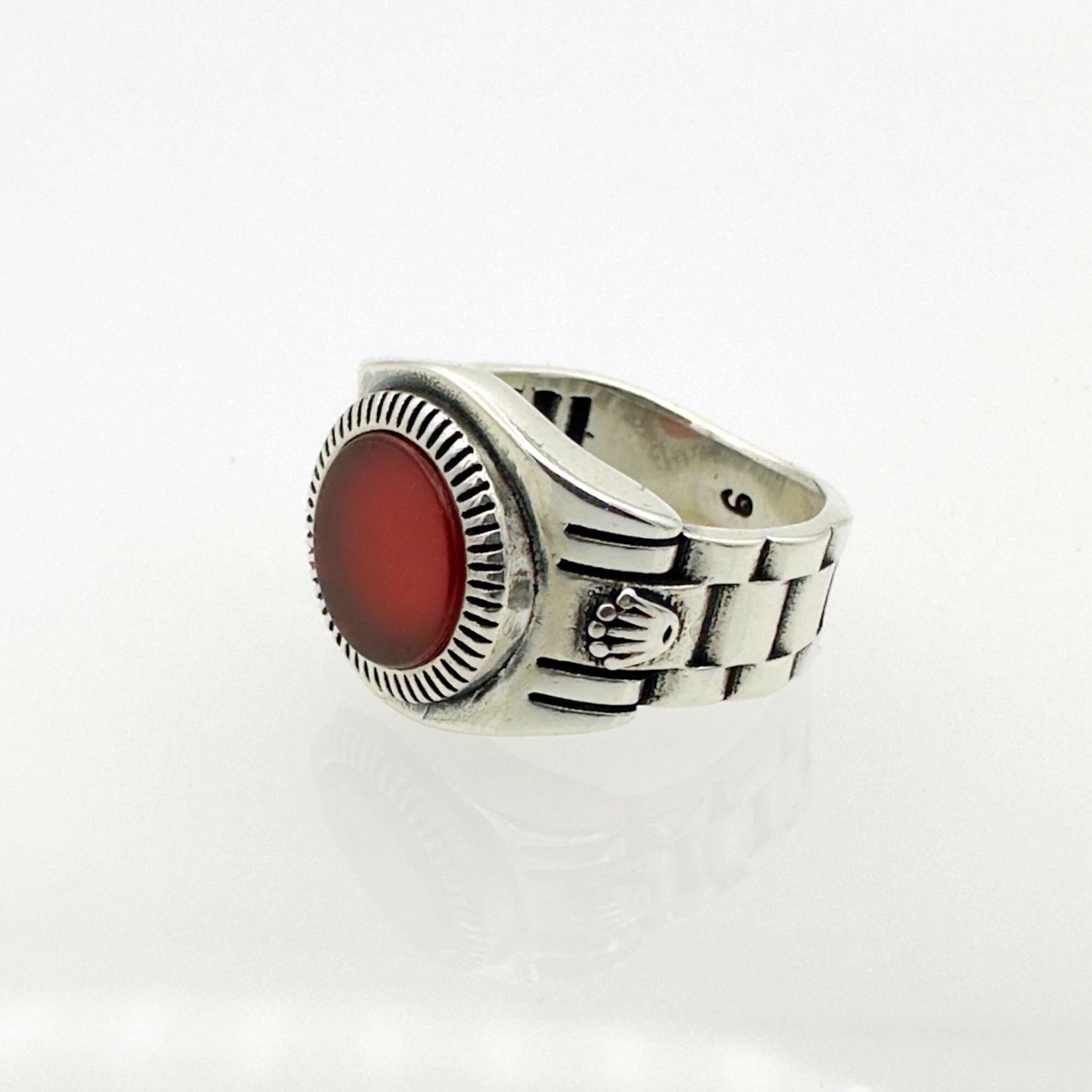 خاتم عقيق أحمر تركي من الفضة الإسترلينية مصنوع يدويًا للرجال