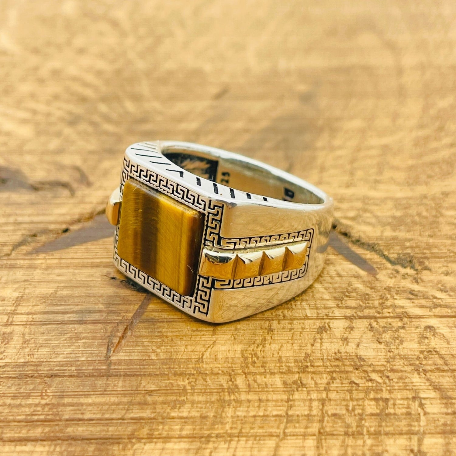 2. حجر عين النمر الفريد: يُعتقد أن حجر عين النمر البني الغني يوفر الحماية والثقة، مما يجعل هذا الخاتم ليس مجرد إكسسوار بل بيان شخصي.