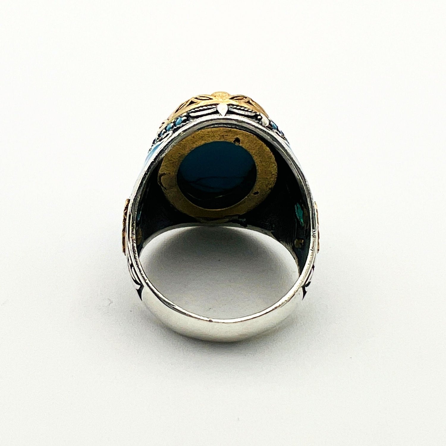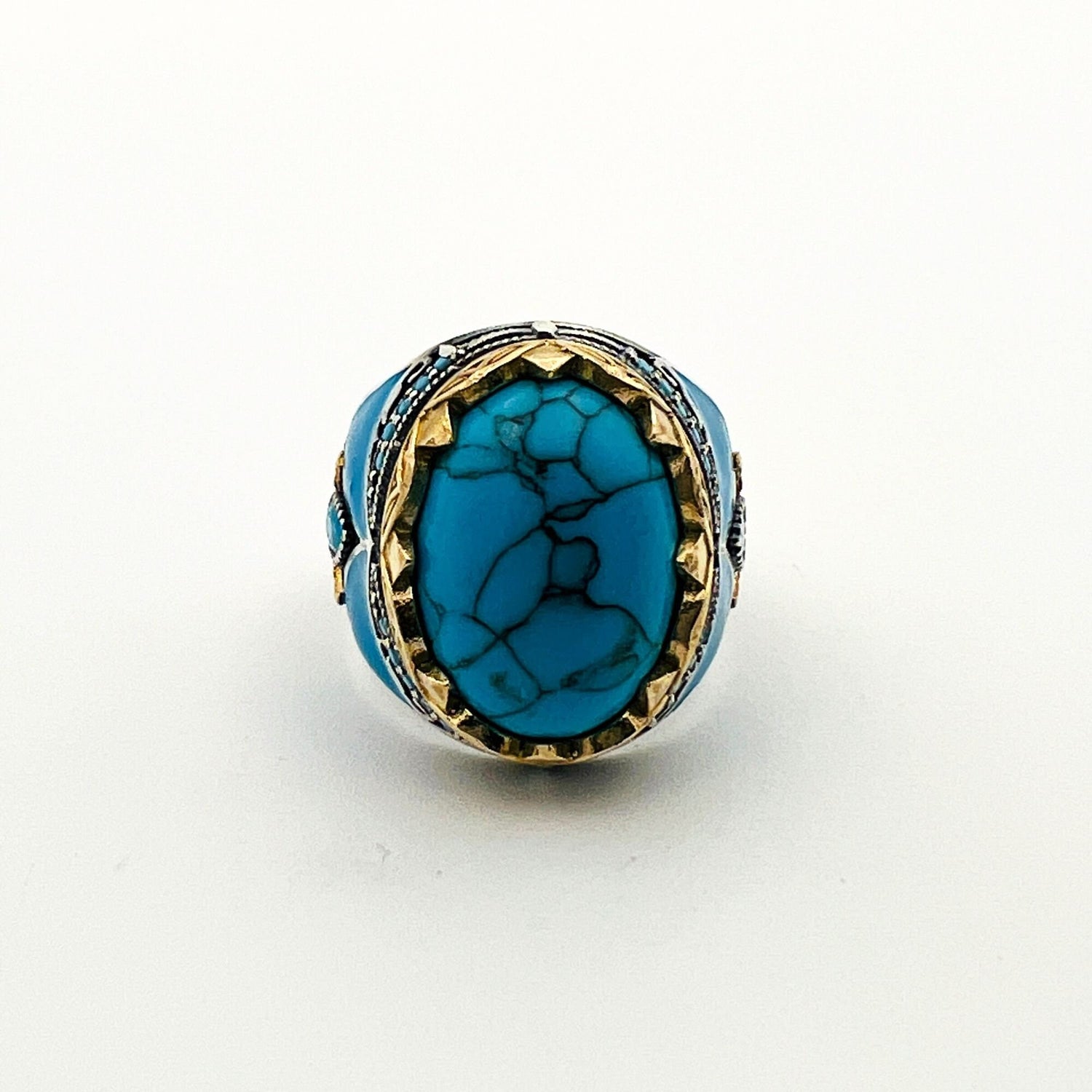 خاتم فيروز بيضاوي تركي مصنوع يدويًا من الفضة الاسترلينية للرجال