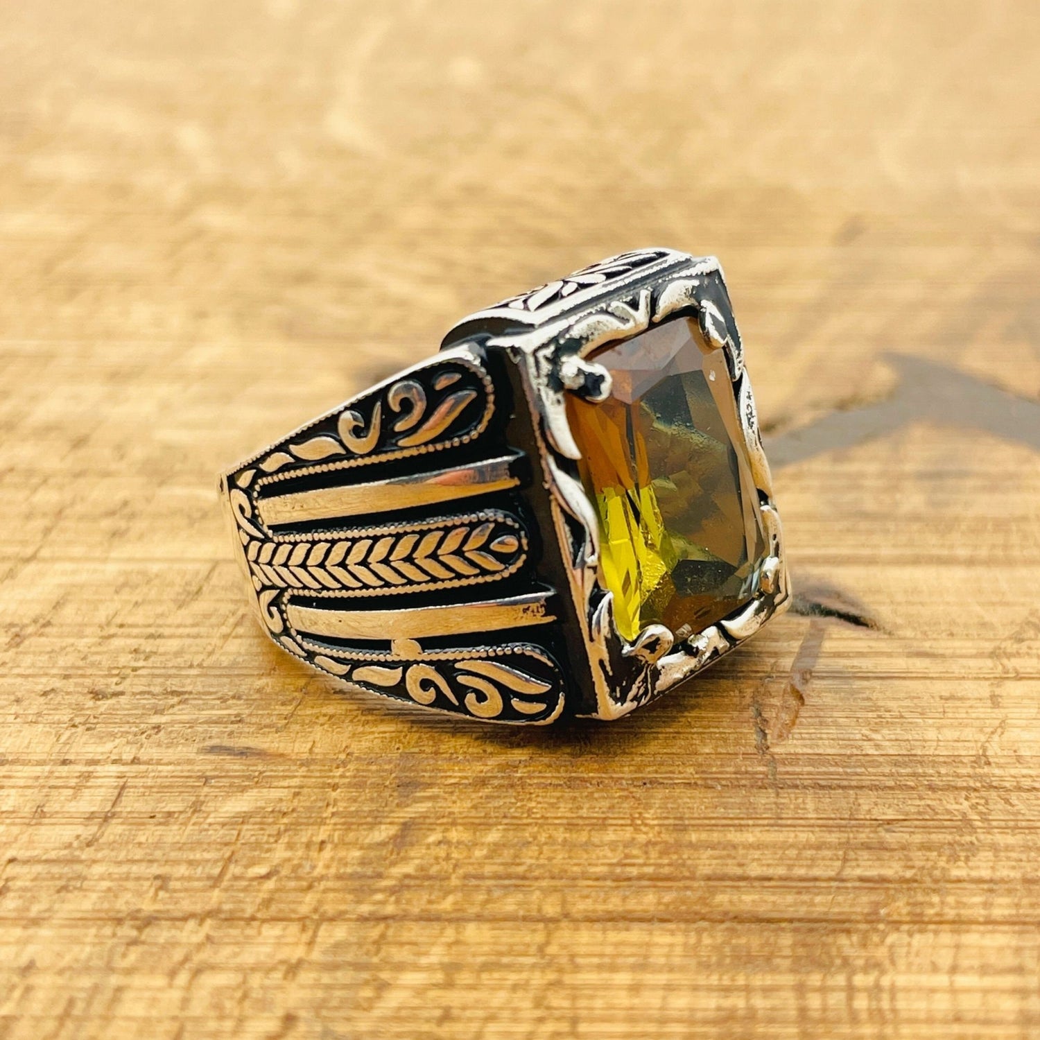 خاتم رجالي بتغيير اللون من الزولتانيت وفضة استرليني 925 على الطراز العثماني - هدية مجوهرات فاخرة مصنوعة يدوياً