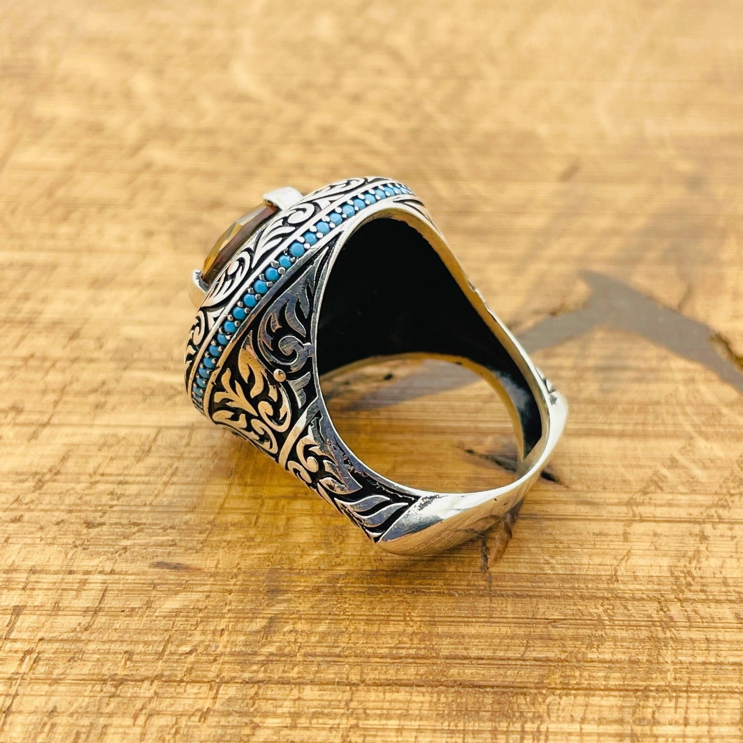 خاتم رجالي من الزولتانيت يتغير لونه بشكل رائع | مجوهرات فضة إسترلينية 925 عثمانية مصنوعة يدوياً