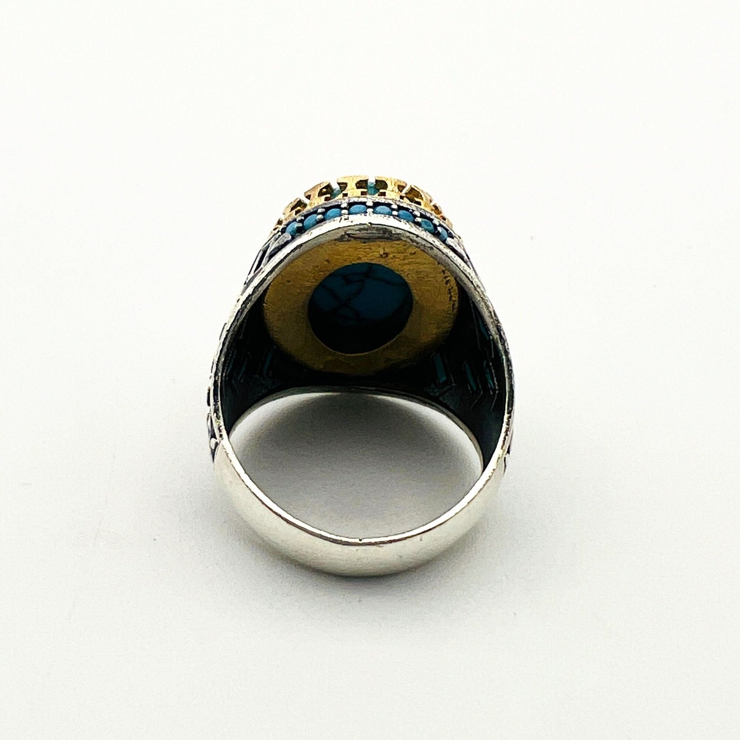 خاتم رجالي بيضاوي من الفيروز بحجر كريم من الفضة الإسترلينية التركية المصنوعة يدوياً - مجوهرات مصنوعة يدوياً