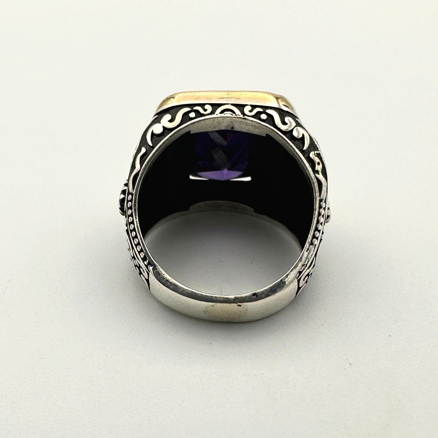 خاتم فضة إسترليني 925 تركي يدوي الصنع عتيق للرجال بحجر أميثيست بنفسجي مربع