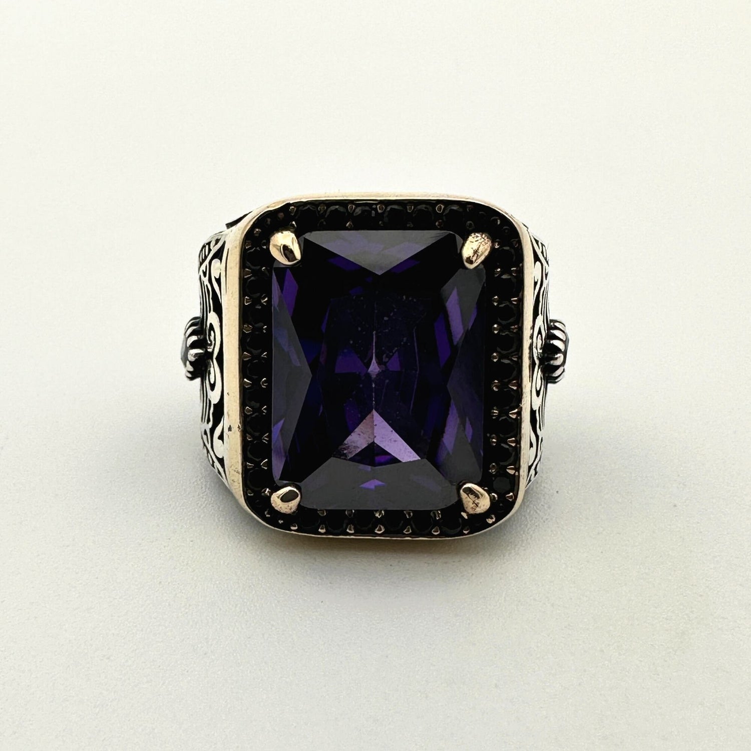 ارتقِ بأي طقم مع هذا الخاتم الرجالي الرائع، تحفة حقيقية من الحرفية التركية. يتميز بحجر الأماثيست البنفسجي المربع الجذاب المثبت في فضة سترلينغ 925 الأصلية، هذه القطعة المستوحاة من الطراز العتيق تمزج بين الأناقة الخالدة والتصميم العثماني المميز، مثالية لإضافة لمسة من الرقي إلى أسلوبك الشخصي أو كهدية لا تُنسى.