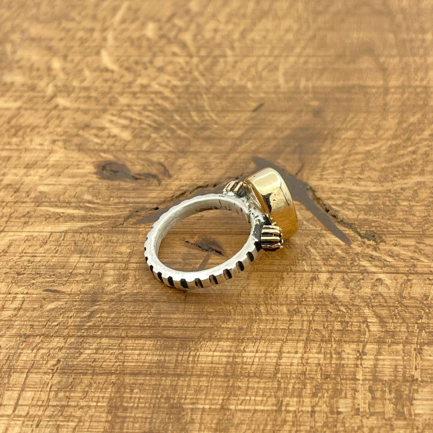 كل خاتم رائع هو شهادة على المهارة الحرفية، يتميز بتوباز ميستيك متعدد الألوان حقيقي موضوع ضمن قاعدة متينة من الفضة الإسترلينية 925، مكمل بشكل جميل بلمسات برونزية دقيقة. هذا الدمج المتناغم يخلق قطعة مميزة تشع بالأناقة وتضيف لمسة من الفخامة البوهيمية لأي طقم. بحجم رأس 11مم × 15مم ووزن تقريبي 10 ± جرامات، يشعر بثقله وتفاصيله الرائعة في كل جانب.