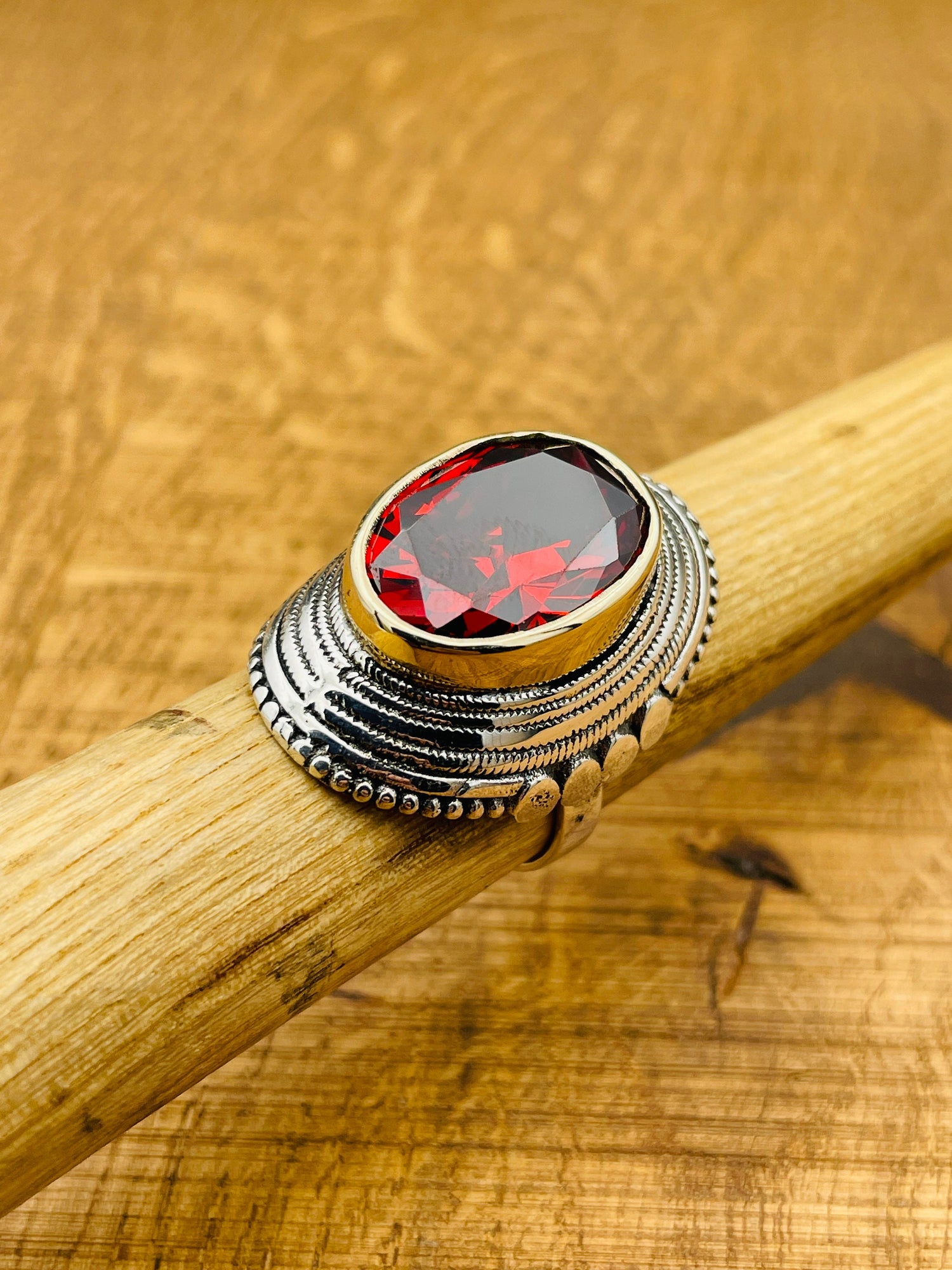 خاتم نسائي كبير بيضاوي من الياقوت الأحمر فضة استرلينية 925 مستوحى من الطراز العثماني