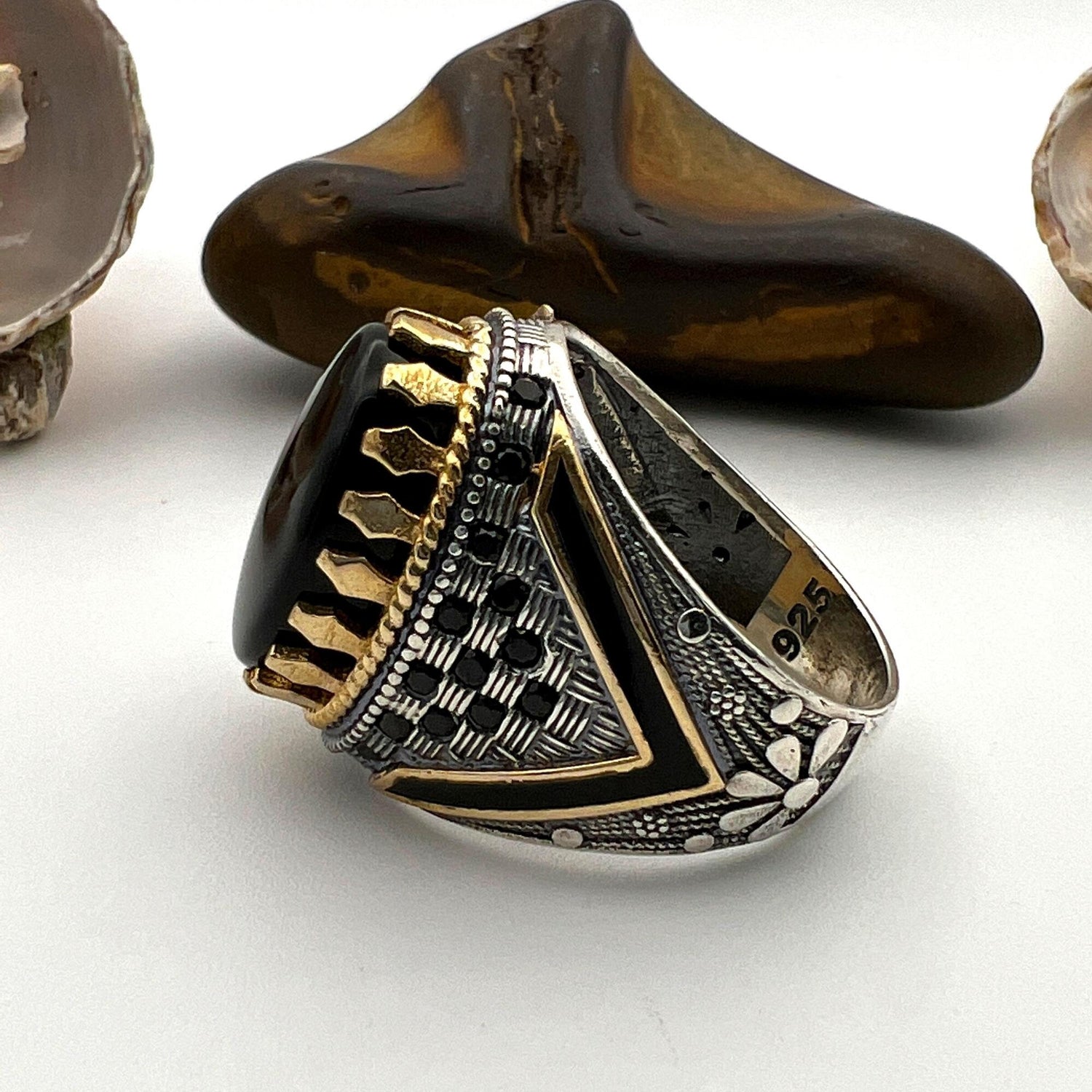 • اكتشف الأناقة مع خاتم الرجال بحجر العقيق الأسود من تركيا