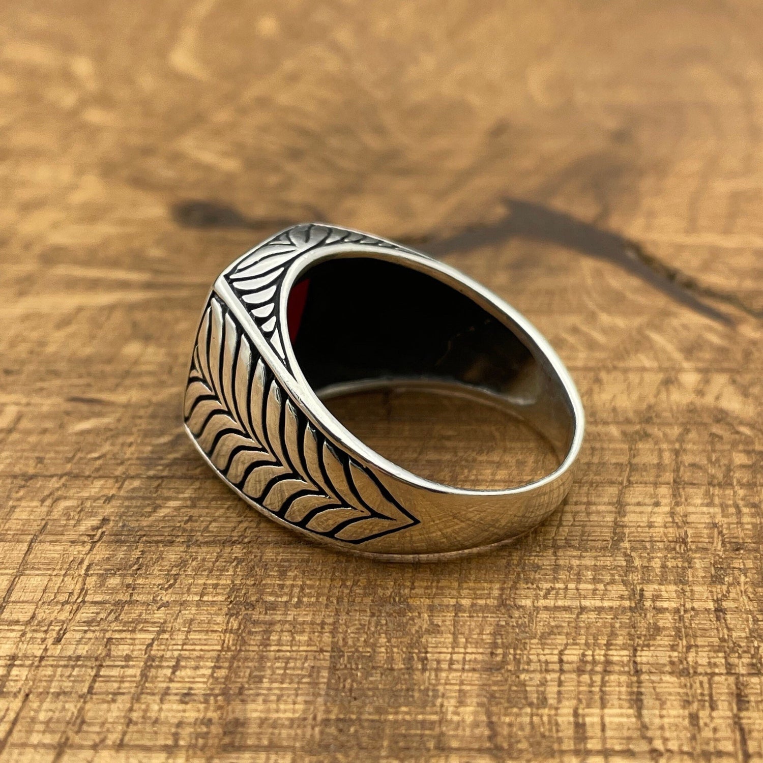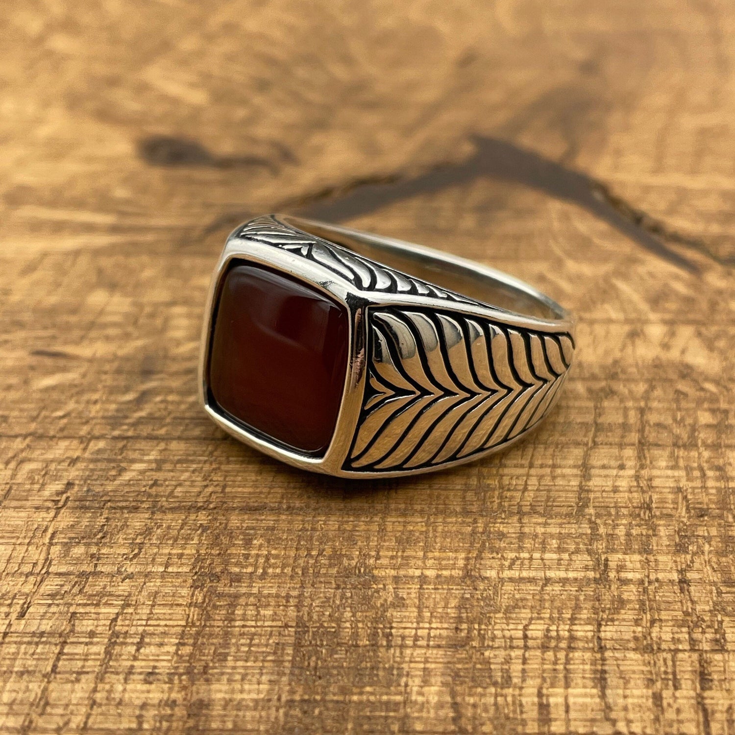 Sterling Silver 925 Handmade Red Agate Men's Ring - TryAladdin