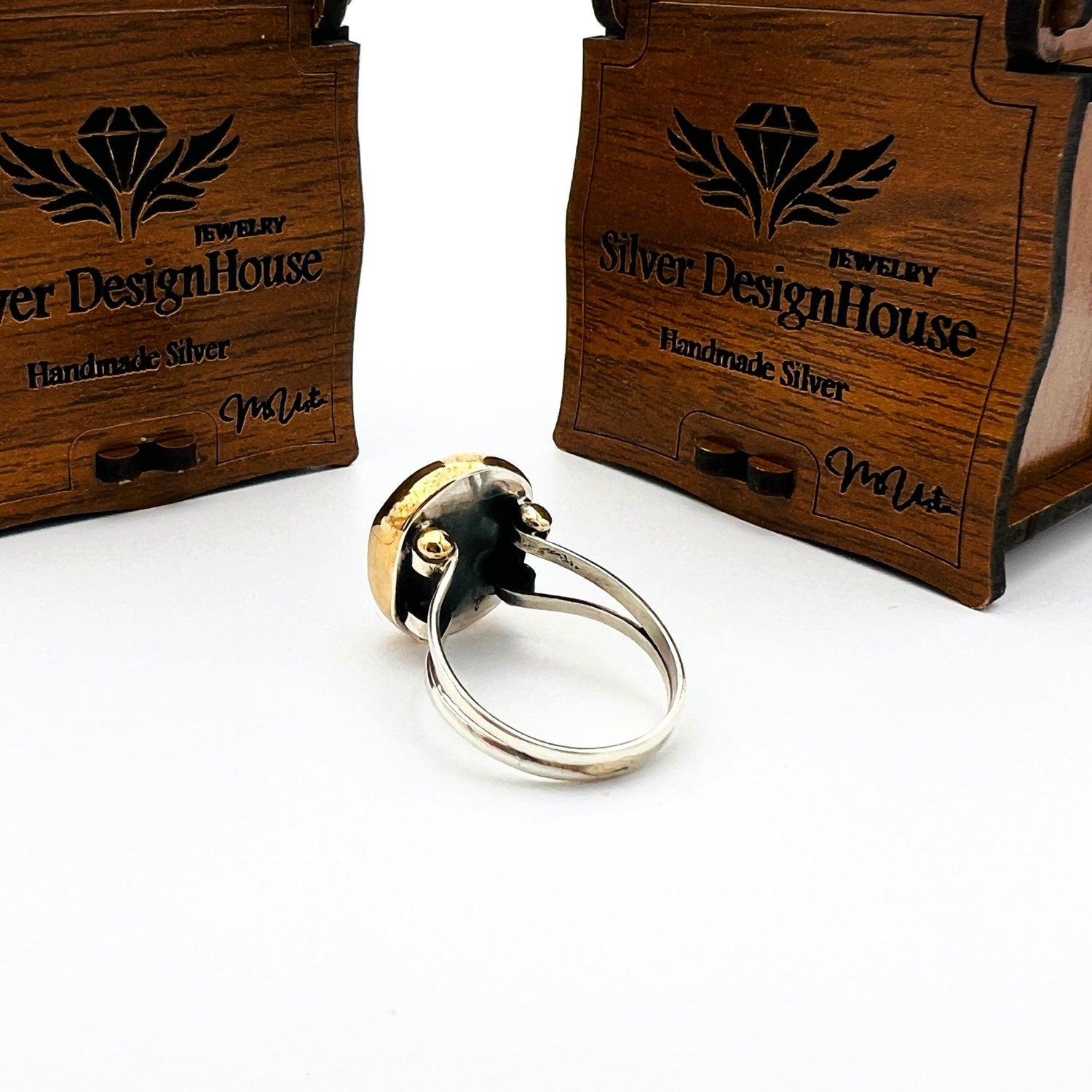 • خاتم نسائي مصنوع يدويًا من الفضة الإسترلينية عيار 925k يتميز بحجر ياقوت أزرق جميل