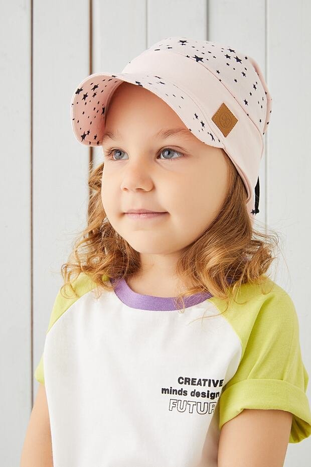 قبعة فيزور للبنات الرضع 100% قطن ناعمة جداً - طباعة نجوم