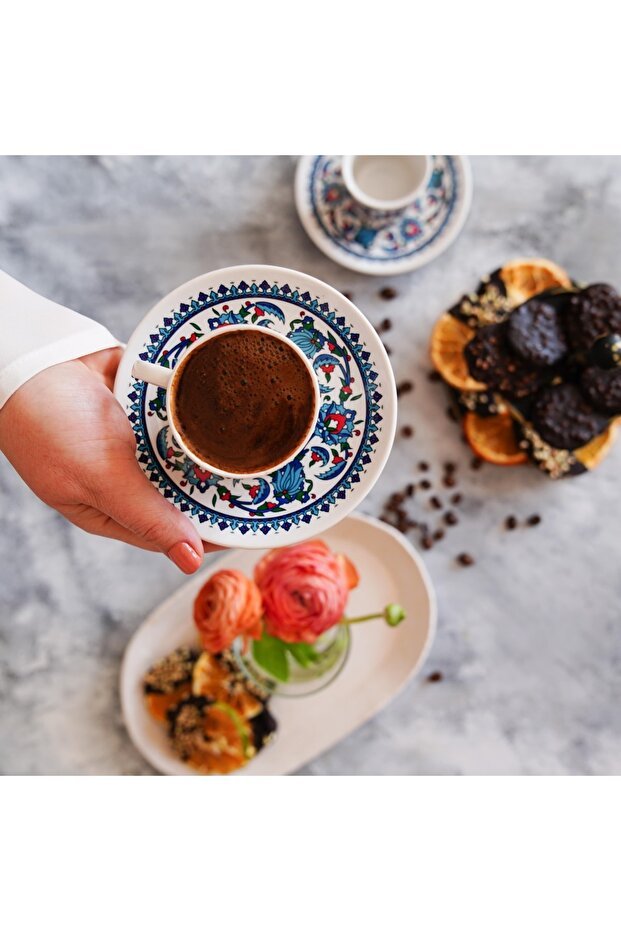 مصنوعة بعناية فائقة، تتميز هذه الأكواب الفاخرة بتصميم مستوحى من طوبكابي، مما يثير التراث الغني لفن العثمانيين. تتضمن كل مجموعة كوبين وصحنين منسقين بشكل جميل، مصممين للاستمتاع الأصيل بالقهوة التركية.