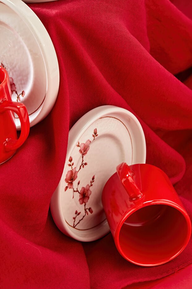 مجموعة أكواب القهوة التركية الخزفية الفاخرة نورة من إرباسلار - مجموعة مكونة من 12 قطعة