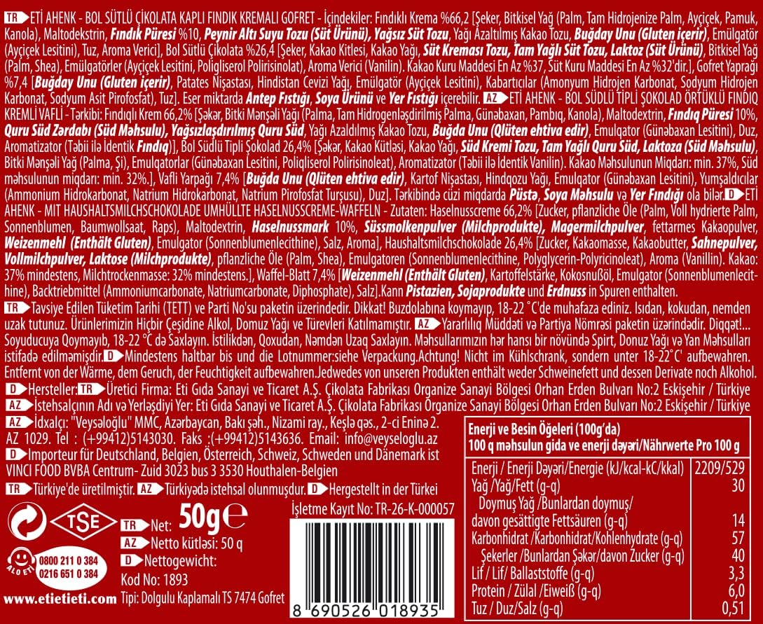 يتم إنتاج "Eti Ahenkurme" بمكونات عالية الجودة وتحت معايير صارمة للنظافة. يمكنك الشعور بالرضا عند الاستمتاع بهذه الحلوى الكلاسيكية.