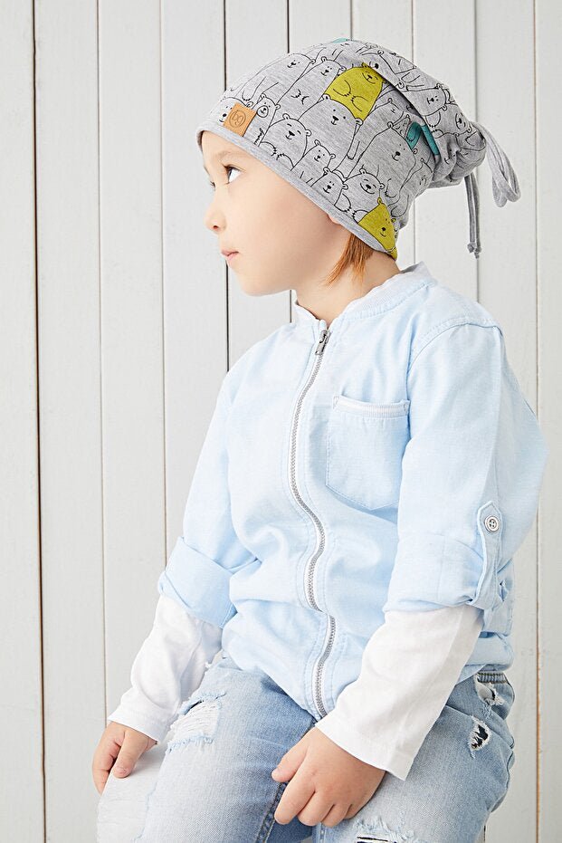 Kids 4 - Season Grey Bear Print Soft cotton Beanie Hat - TryAladdin