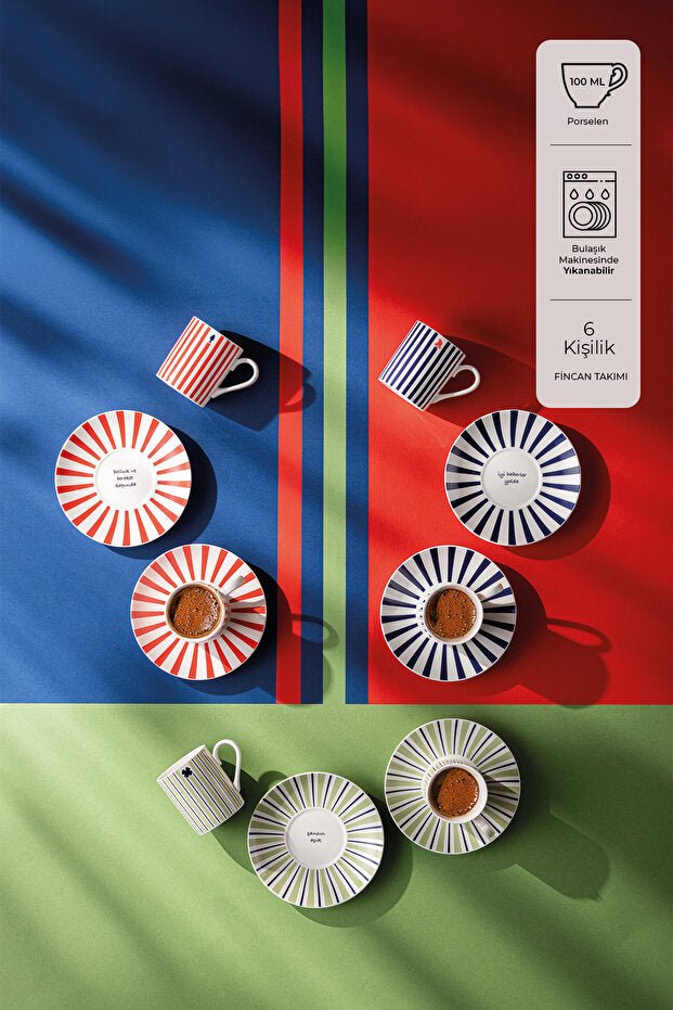Premium Authentic Turkish Coffee Cup Set - Destiny Collection - 6 - Piece Set - 100ml Cups - TryAladdin