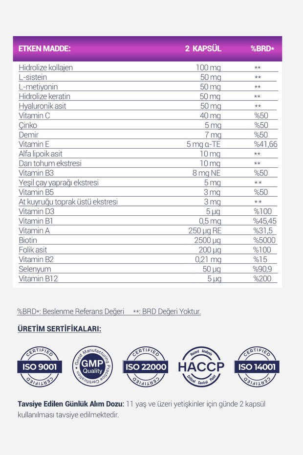 - 🌿 تركيبة غنية: تحتوي على كولاجين مهدرج، كيراتين، حمض الهيالورونيك، مجموعة كاملة من فيتامينات ب (B1، B2، B3، B5، B6، B12)، حديد، سيلينيوم، ومختلف مستخلصات الأعشاب.