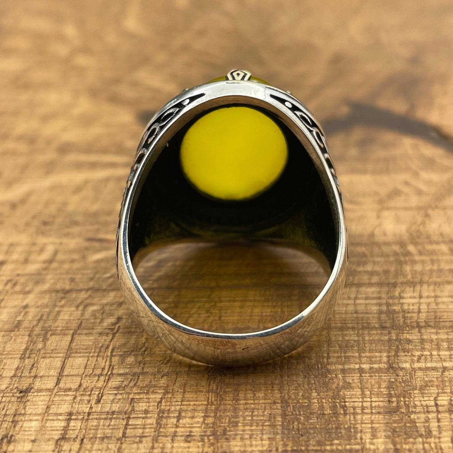 خاتم فضة بحجر العقيق الأصفر للرجال