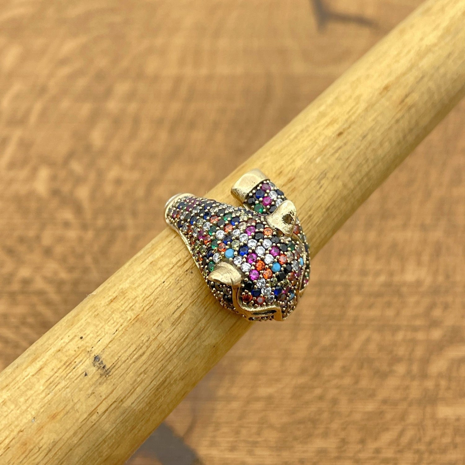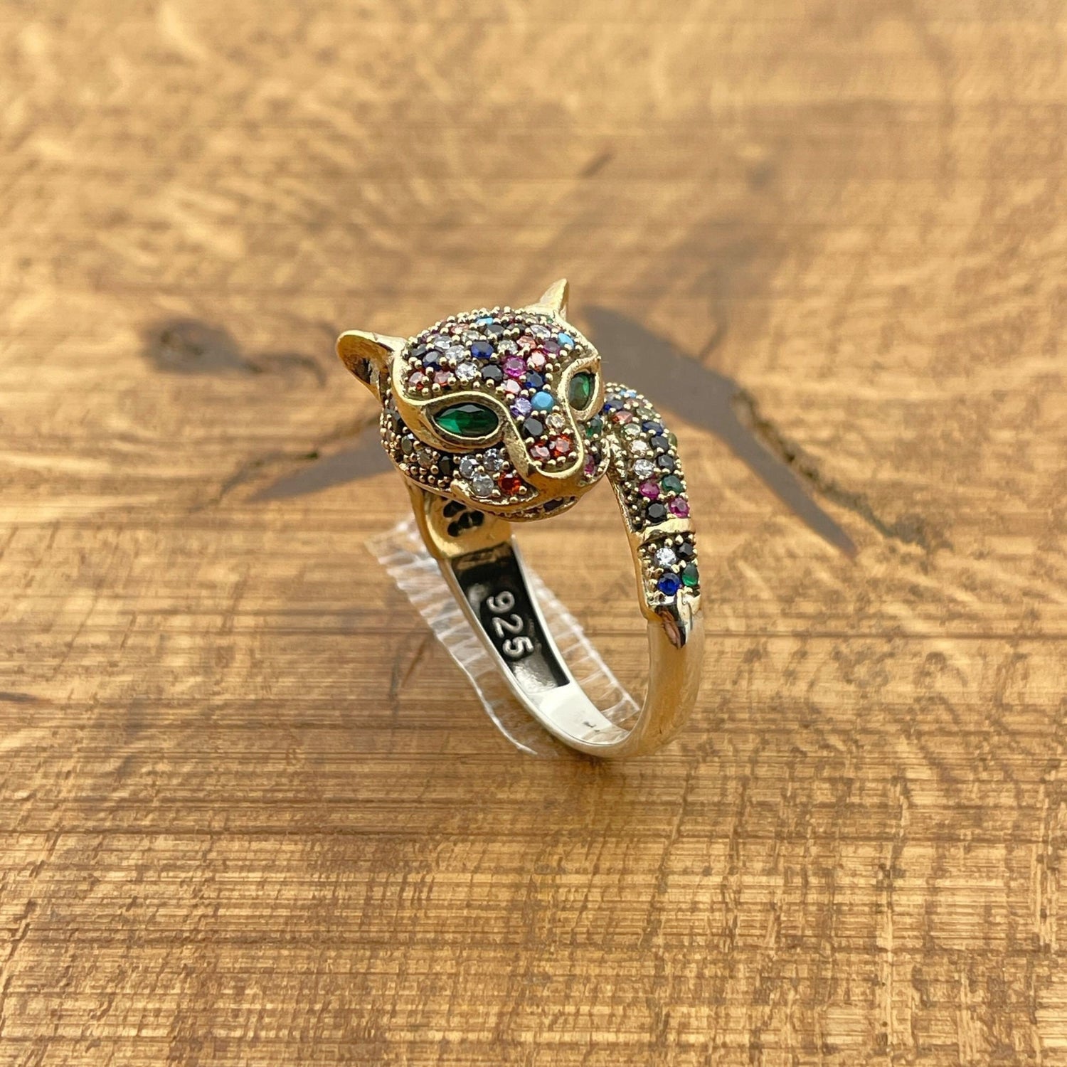 خاتم رأس نمر متعدد الأحجار الزاهية | مجوهرات حيوانات فضة تركية 925 إسترلينغ مصنوعة يدوياً للنساء