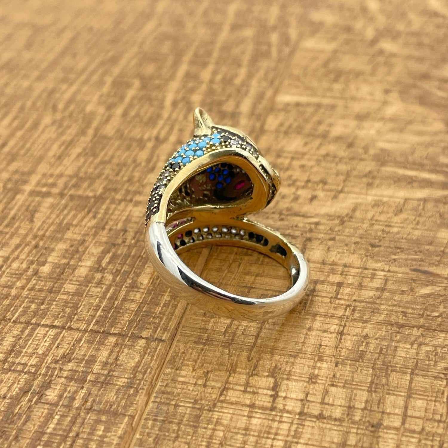 خاتم رأس نمر متعدد الأحجار الزاهية | فضة إسترلينية تركية يدوية الصنع 925 وبرونز