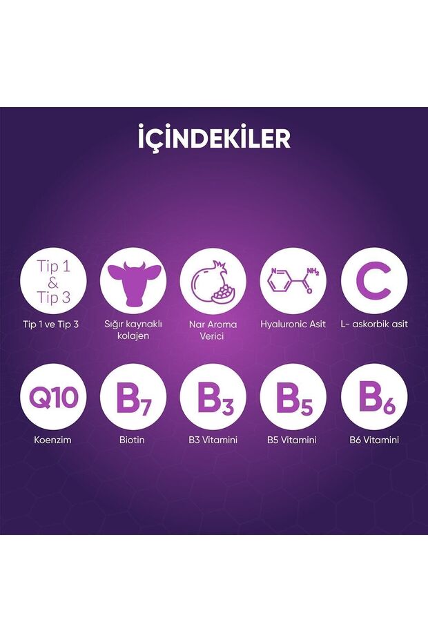 • 💪 دعم شامل: مزيج متكامل من فيتامين C وB3 وB5 وB6، إنزيم Q10، البيوتين، والزنك يعمل على تغذية بشرتك وشعرك وأظافرك من الداخل.