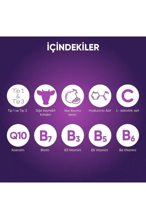 • صيغة كولاجين متقدمة: تحتوي على ببتيدات كولاجين بوفين هيدروليكي من النوع 1 والنوع 3 عالية الفعالية، وهي ضرورية لمرونة البشرة والجمال العام.