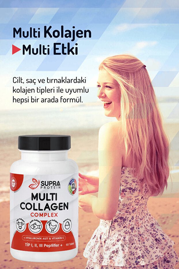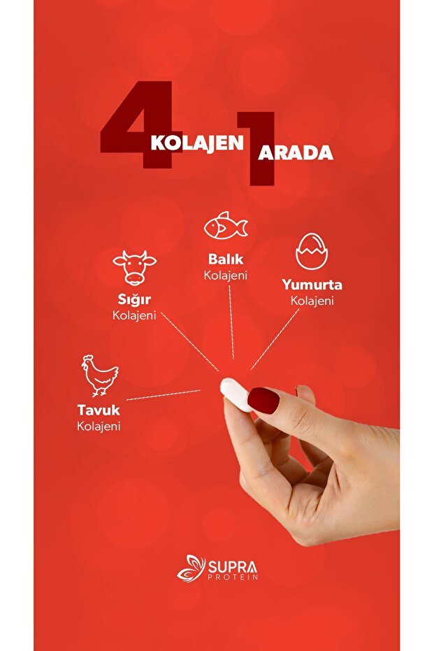 افتحي بشرة متألقة، وشعر قوي، ومفاصل مرنة مع مركب سوبر بروتين متعدد الكولاجين. هذه التركيبة الفريدة، الأولى من نوعها في تركيا، تجمع بين الكولاجين من 4 مصادر قوية: البقر، والأسماك، والدجاج، وغشاء البيض المبتكر.