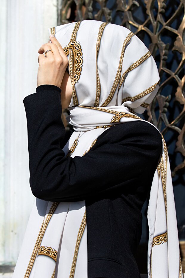 Women's Luxury Medina Silk Shawl - Cream - TryAladdin