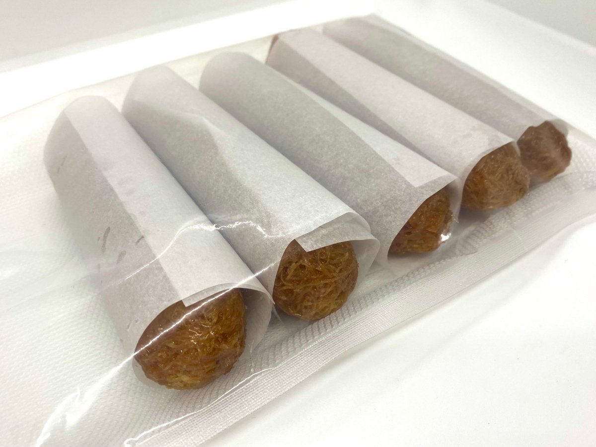 استمتع بالمذاق الرائع لـErzurum Kadayif Dolma، حلوى تركية تقليدية محشوة بالجوز عالي الجودة. مصنوعة من عجينة الكنافة المقرمشة ومحشوة بسخاء بالجوز المفروم ناعماً، كل قضمة تقدم مزيجاً مثالياً من النكهات الحلوة والمقرمشة والجوزية. مثالية للمشاركة مع العائلة والأصدقاء، أو كمعاملة لذيذة للمناسبات الخاصة.