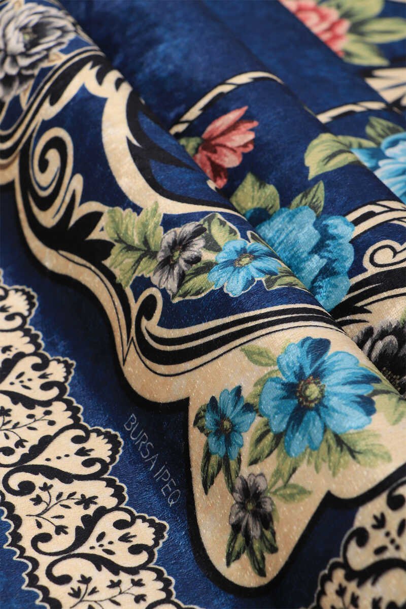 تقديم سجادة صلاة بورصة إيبك المخملية الزرقاء الداكنة – إضافة فاخرة إلى ديكور منزلك. تجمع هذه السجادة المصنوعة بدقة بين الزخارف التقليدية للفن التركي والأناقة الحديثة، مما يوفر لك الأسلوب والراحة.