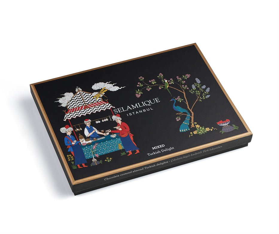 تقدم Selamlique نكهات فاخرة وغير عادية من الحلقوم التركي، مثل الحلقوم التركي الأصيل باللوز المغطى بالشوكولاتة البيضاء بنكهة الورد أو البرتقال أو المصطكى والمزينة بغبار الذهب.