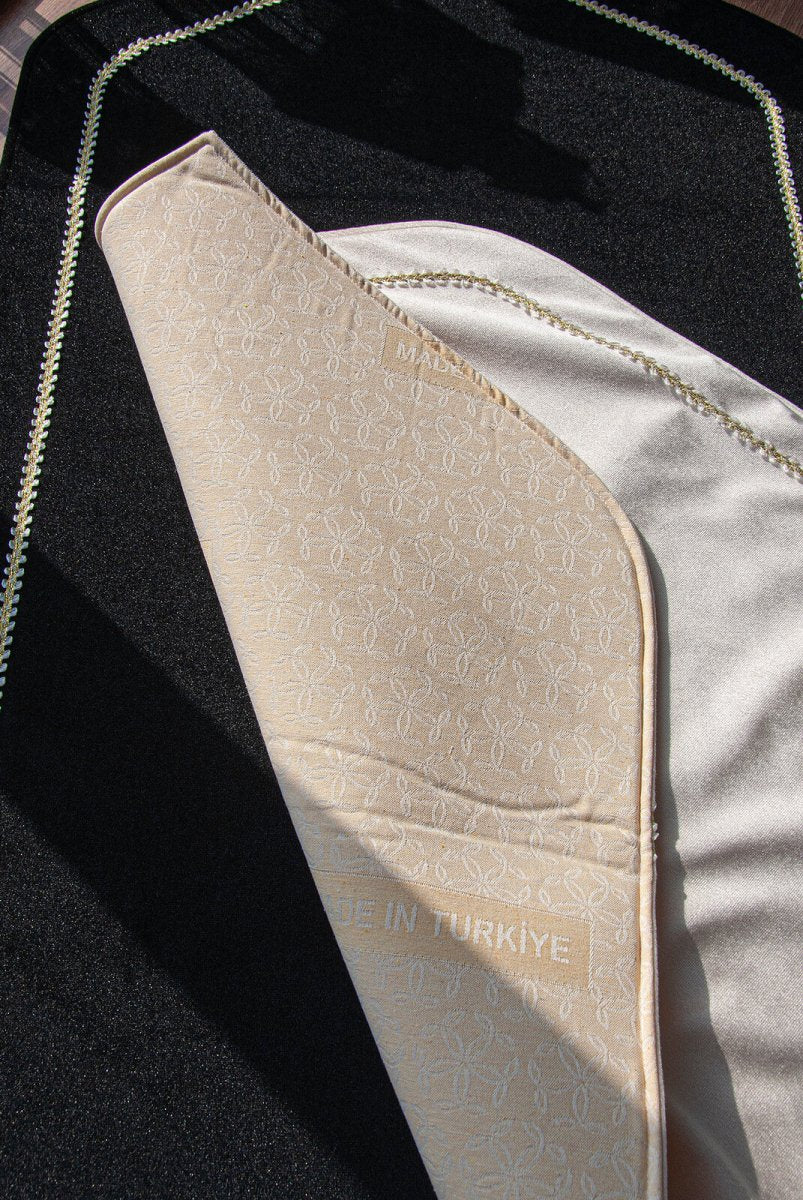 مجموعة سجادة صلاة مخملية ناعمة الملمس خاصة للأزواج باللونين الأسود والكريمي