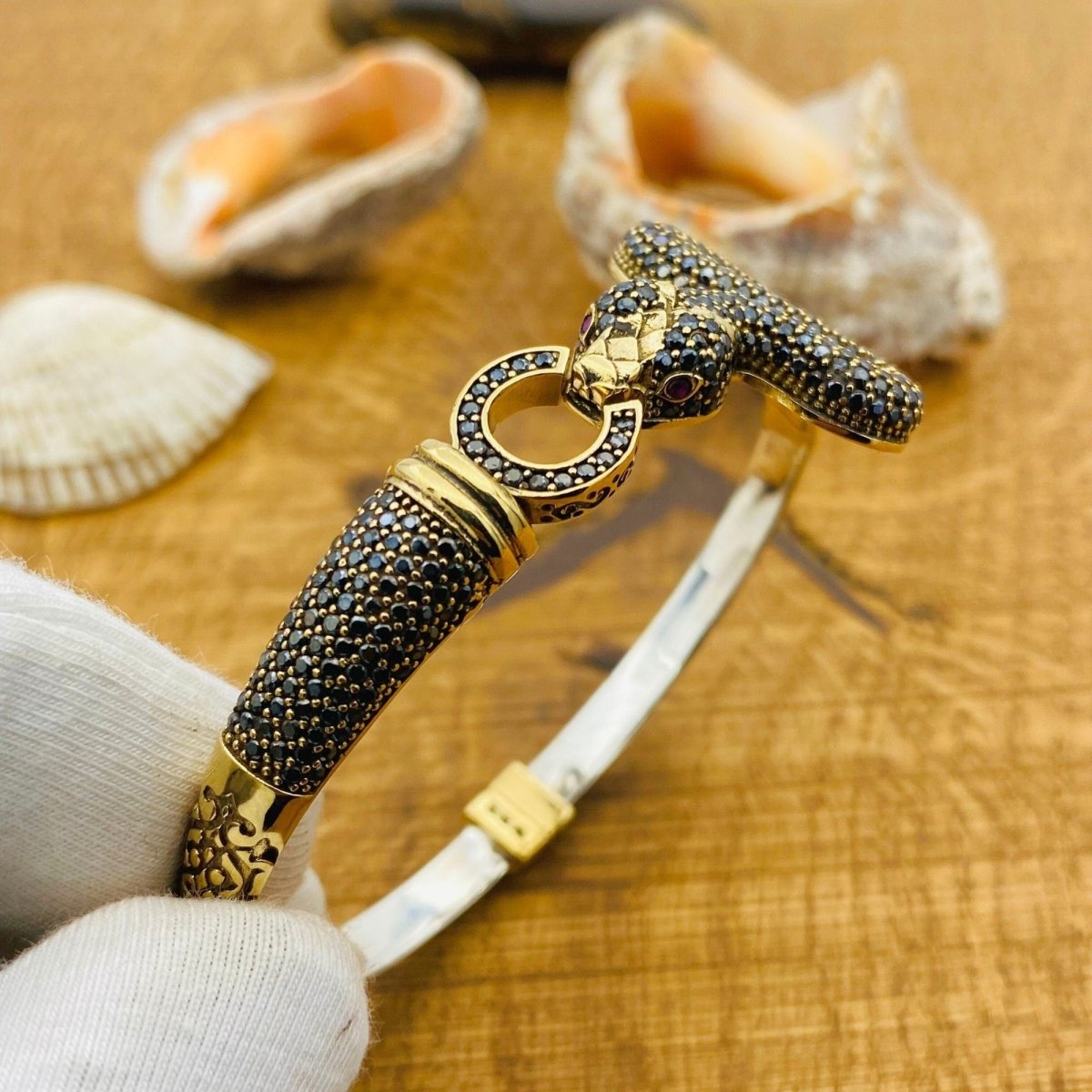 سوار نسائي قابل للتعديل بحجر العقيق الأسود على شكل ثعبان