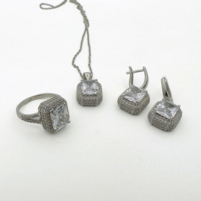 - ارفع مستوى أناقتك مع مجموعة النساء الفضية بحجر الزركون الأبيض الجذابة