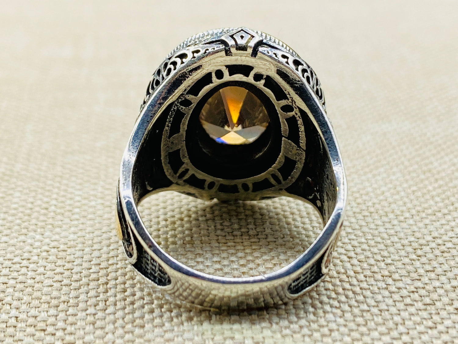 Turkish Ottoman Style 925 Sterling Silver Citrine Ring