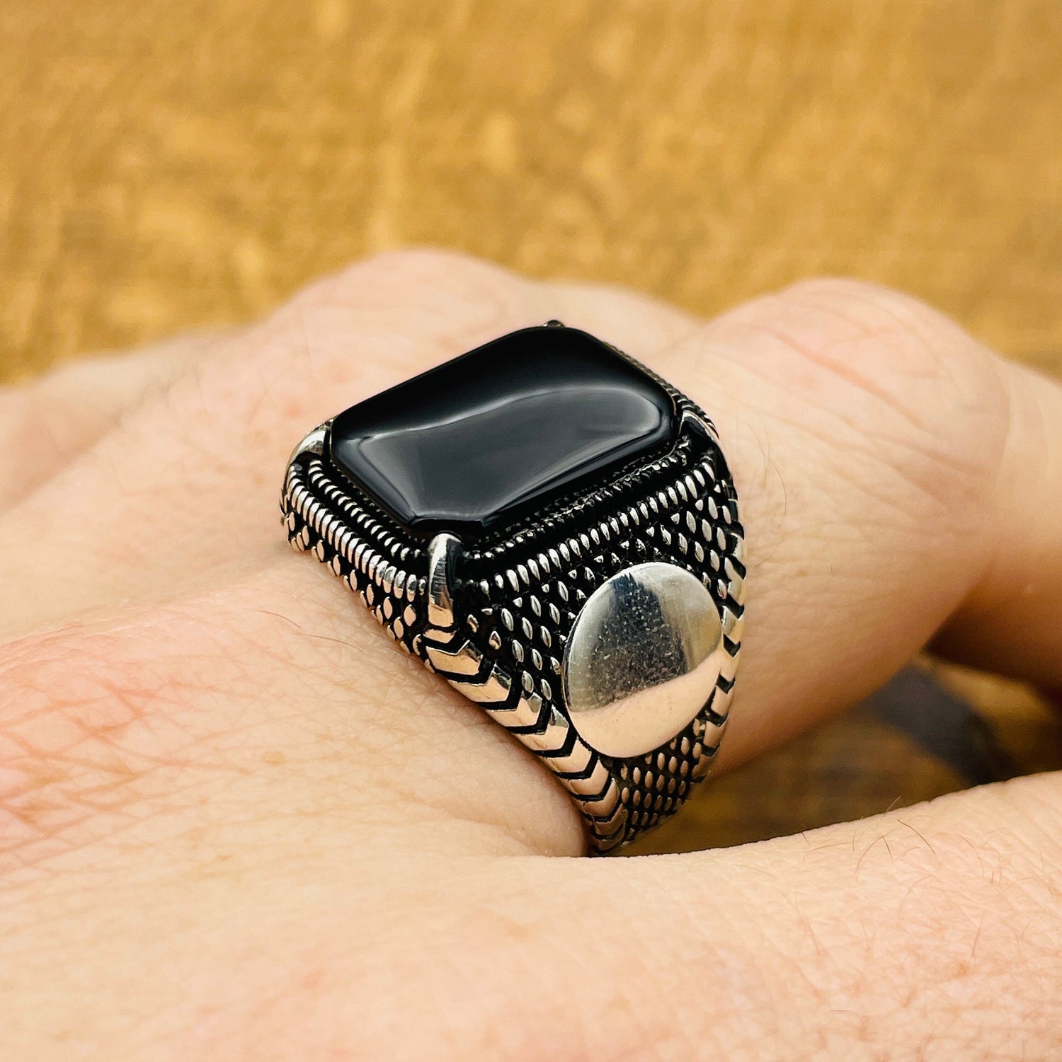 Enhance your look with this captivating black onyx stone men's ring, showcasing Turkish artistry and craftsmanship. Whether as a gift or a personal accessory, this elegant ring offers sophistication and charm. Make a statement with this distinct piece that combines tradition with modern allure.
