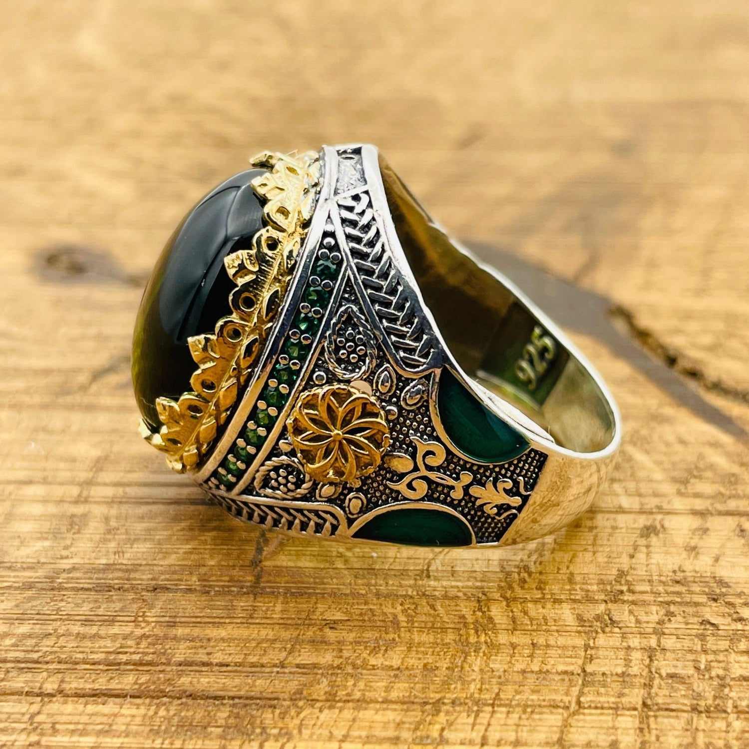 Discover a masterpiece of artisanal craftsmanship with this exquisite Men's Green Topaz Ring, a timeless piece designed to elevate any collection. Reflecting rich Turkish heritage, this ring blends classic elegance with a distinct, masculine appeal.