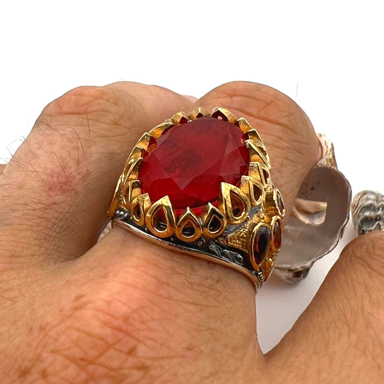 Elevate your style with this exquisite handmade men's red Tourmaline Paraiba stone ring crafted in 925 sterling silver. The vibrant red stone adds a touch of elegance to this unique Turkish ring design. Whether as a gift for him or a personal indulgence, this Paraiba ring is a symbol of sophistication and charm.
