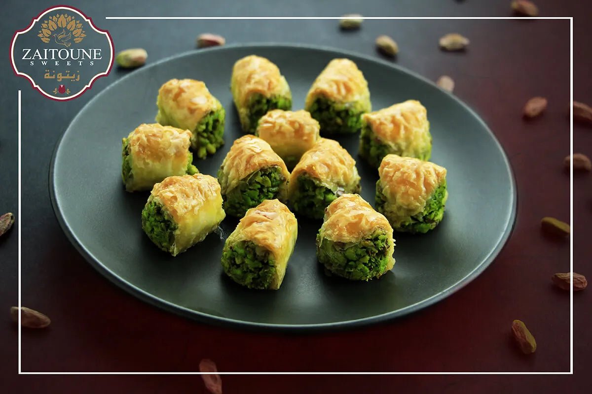 Kol & Shkor with Honey  by Zaitoune is filled with Turkish desserts, containing sweetened pastries made of thin layers of dough, stuffed with  pistachios, and sweetened with honey Packed with a cover made of metal supported by a nylon cover, to ensure the protection of the product from external factors such as moisture and to preserve its quality and taste.