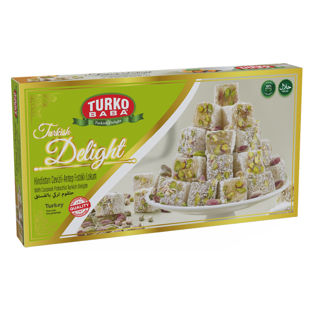 TURKOBABA Premium Coconut Coated Pistachio Turkish Delight - 400g