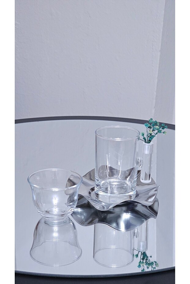 Tato ohromující 18dílná kolekce je pečlivě zpracována a obsahuje jemný mátový vzor vyrytý na prémiovém skle. Navržena pro 6 osob, nabízí všestrannou a sofistikovanou prezentaci jak pro tradiční turecký čaj, tak pro vynikající kávu, která okouzlí náročné zákazníky.