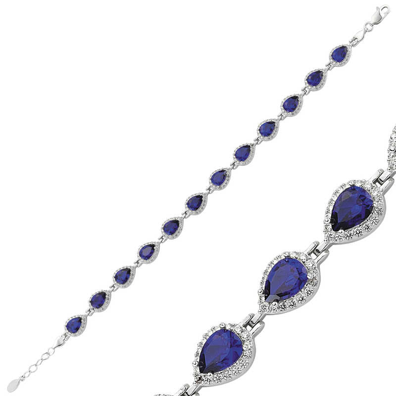 Zářící sofistikovaným půvabem s naším vynikajícím stříbrně tónovaným tenisovým náramkem s modrými hruškovými kameny a třpytivými kubickými zirkony (CZ). Tento ohromující kousek obsahuje nepřetržitou řadu brilantních námořnicky modrých hruškových kamenů, z nichž každý je pečlivě orámován halem zářivých kubických zirkonů (CZ). Nadčasový design tenisového náramku zajišťuje elegantní tok kolem zápěstí, který vrcholí okouzlujícím zobrazením jiskry a barvy.